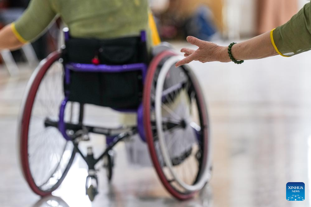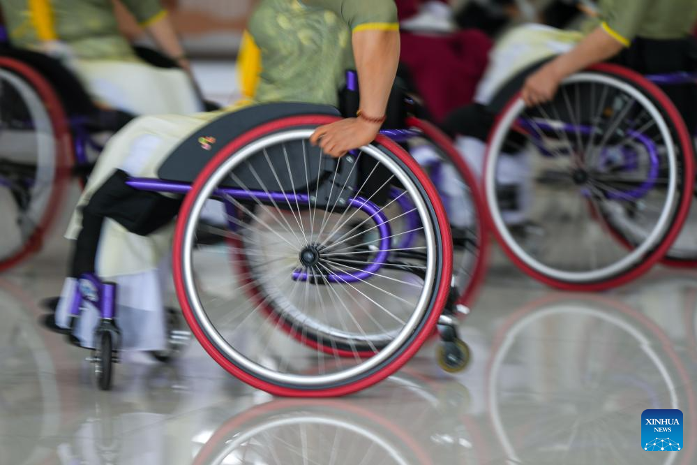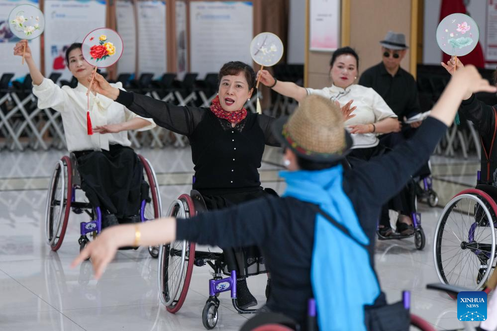 Members of a wheelchair dance team rehearse in Nanjing, east China's Jiangsu Province, April 27, 2025.