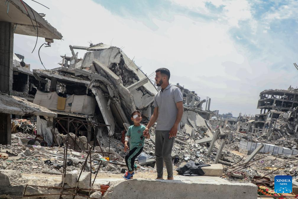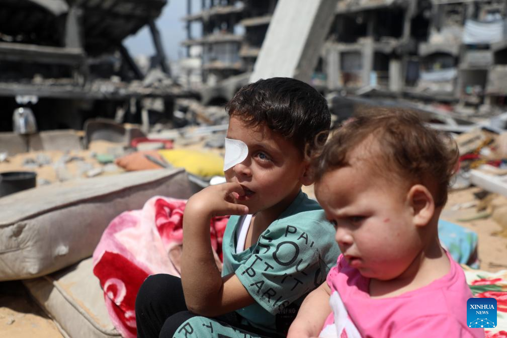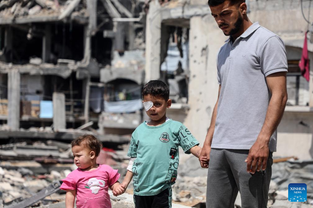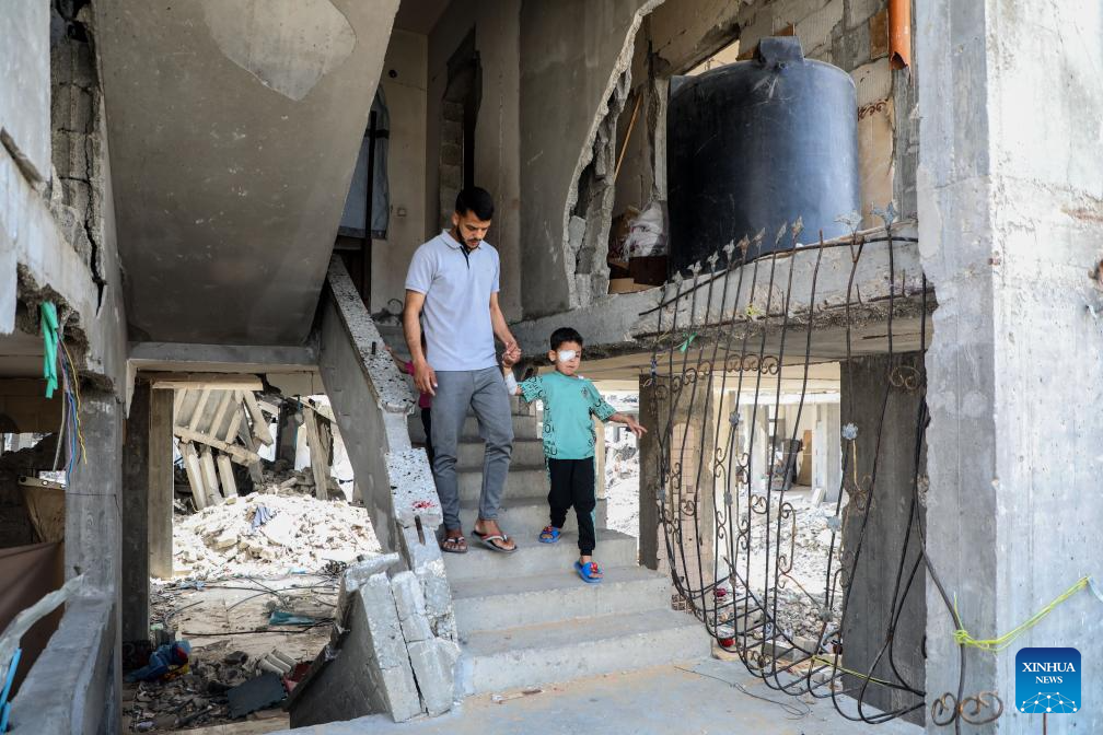 The seven-year-old Palestinian boy lost his right eye due to Israeli military explosive remnants. (Photo by Rizek Abdeljawad/Xinhua)