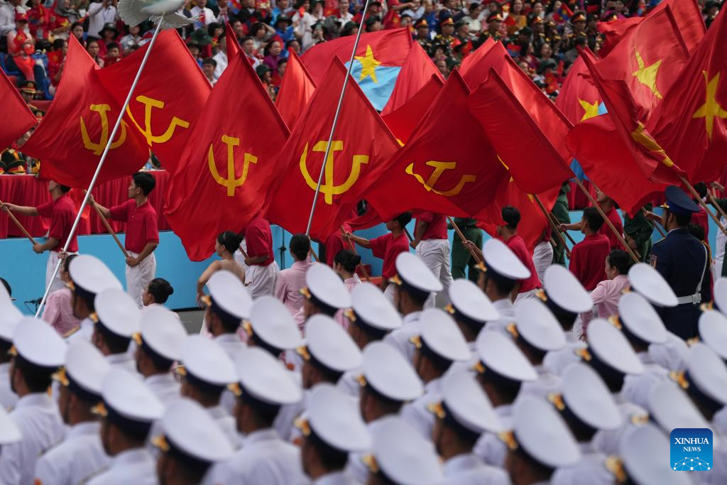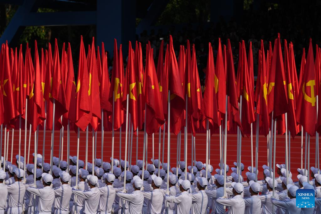 Vietnamese leaders, including General Secretary of the Communist Party of Vietnam Central Committee To Lam, President Luong Cuong, Prime Minister Pham Minh Chinh and Chairman of the National Assembly Tran Thanh Man, attended the event along with representatives from various sectors. (Xinhua/Hu Jiali)