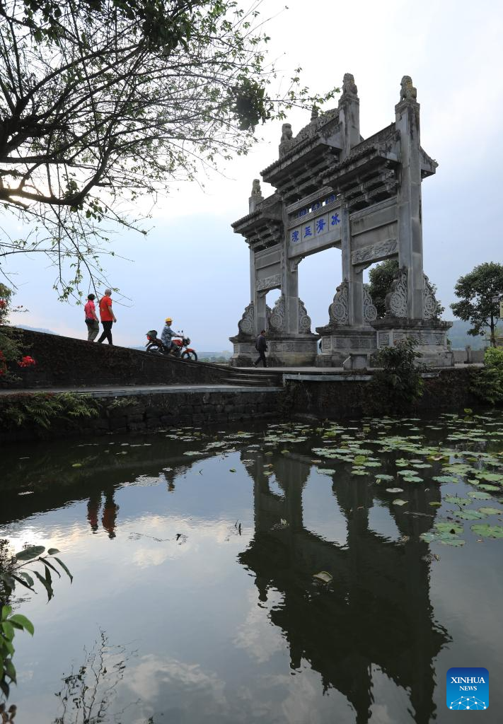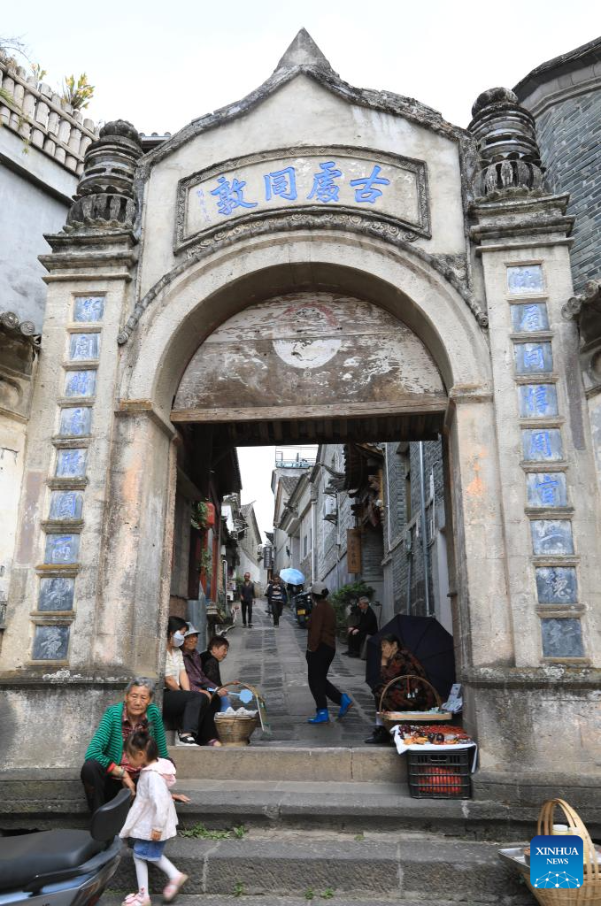 Residents walk past the Ancestral Hall of the Cun Clan, part of which is built with volcanic rocks, in Tengchong, southwest China's Yunnan Province, April 23, 2025. Home to 99 active and extinct volcanoes, Tengchong is rich in geothermal resources. The city's environment is known by locals as being "half water half fire," a feature that has been utilized to develop tourism. (Photo by Gong Zujin/Xinhua)