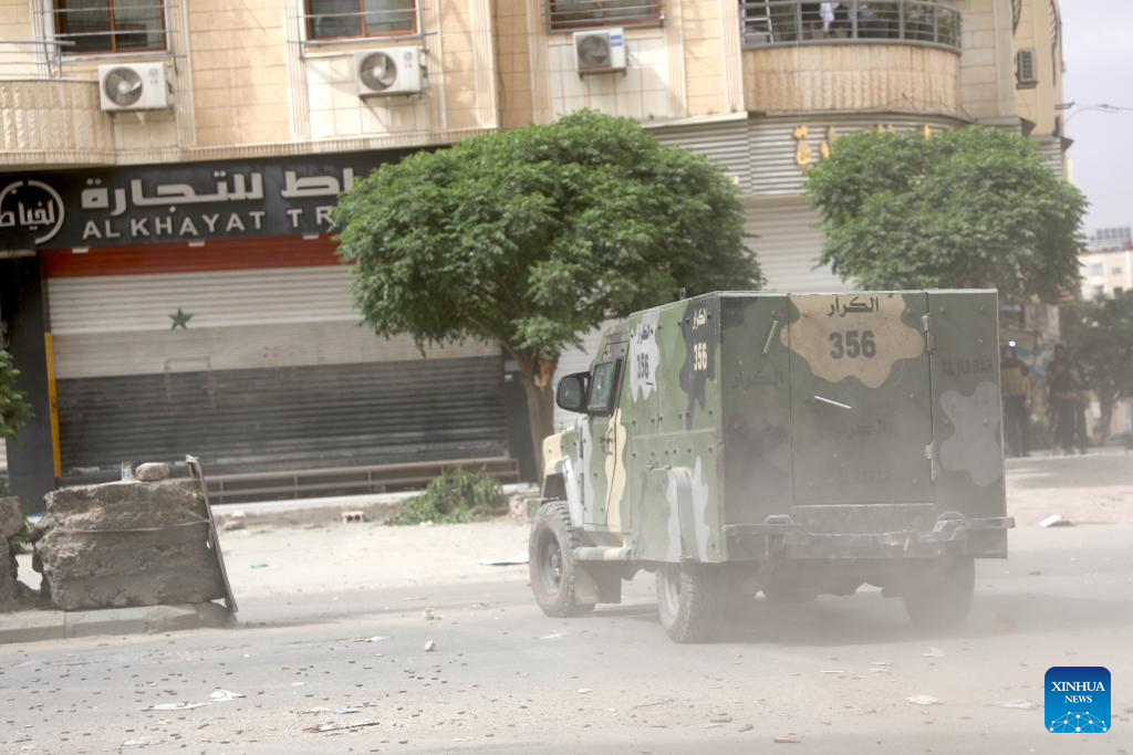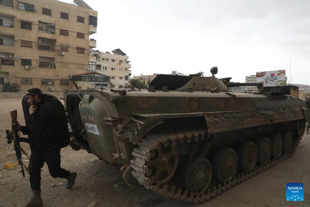 A Syrian military vehicle is seen in the town of Ashrafiyat Sahnaya, southwest of Damascus, Syria, on April 30, 2025. (Str/Xinhua)
