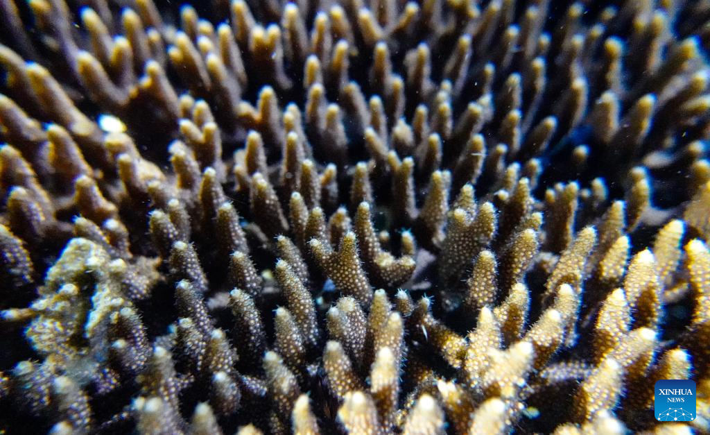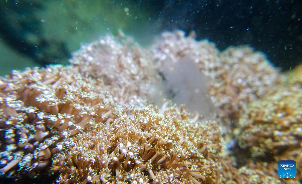 This photo taken on March 17, 2025 shows coral spawning at Koh Rong Archipelago in Preah Sihanouk province, Cambodia. A conservationist group has sighted coral spawning for the second time at Koh Rong Archipelago in southwest Cambodia's Preah Sihanouk province, said a joint press release on Wednesday. (Sophie Owsianka/Fauna & Flora/Handout via Xinhua)
