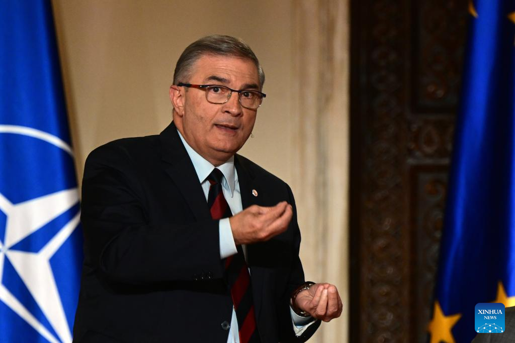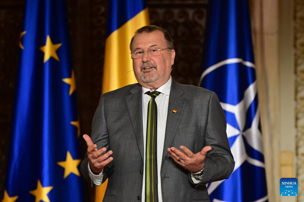 Daniel Funeriu, candidate for Romania's presidency, speaks during an electoral debate organised by Romania's state television channel at the Cotroceni palace in Bucharest, Romania, April 29, 2025. Romanians will vote in the first round of presidential elections on May 4. (Photo by Cristian Cristel/Xinhua)