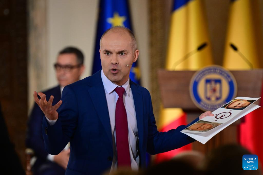Silviu Predoiu, candidate for Romania's presidency, speaks during an electoral debate organised by Romania's state television channel at the Cotroceni palace in Bucharest, Romania, April 29, 2025. Romanians will vote in the first round of presidential elections on May 4. (Photo by Cristian Cristel/Xinhua)