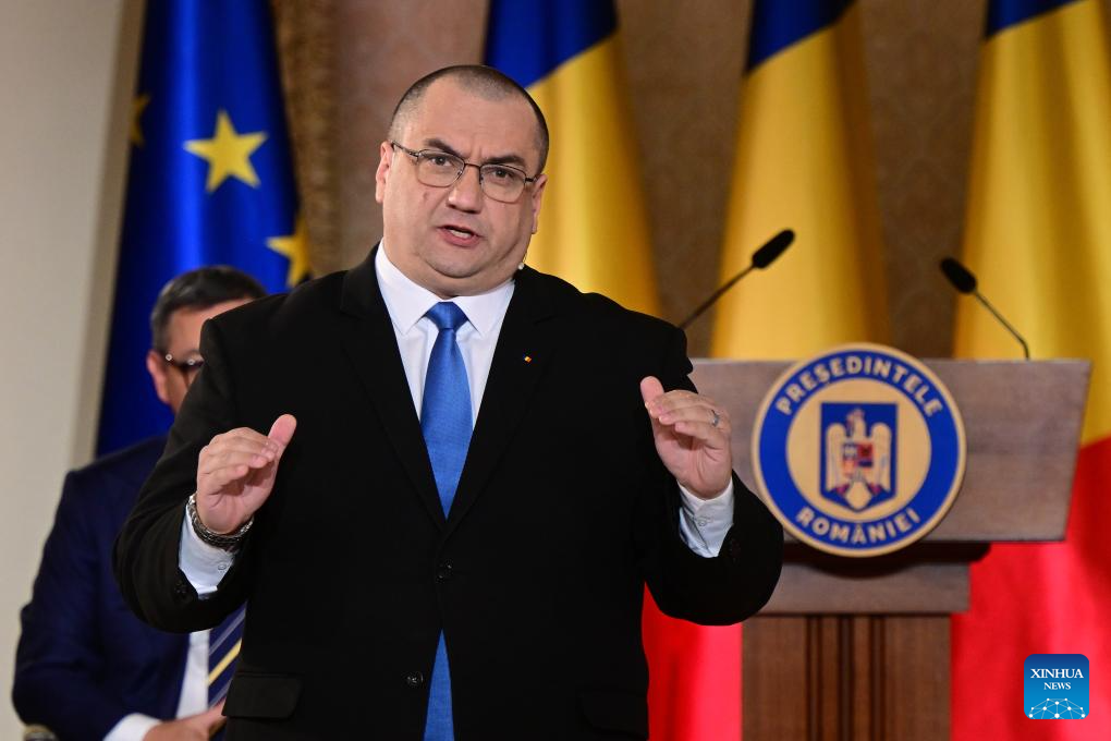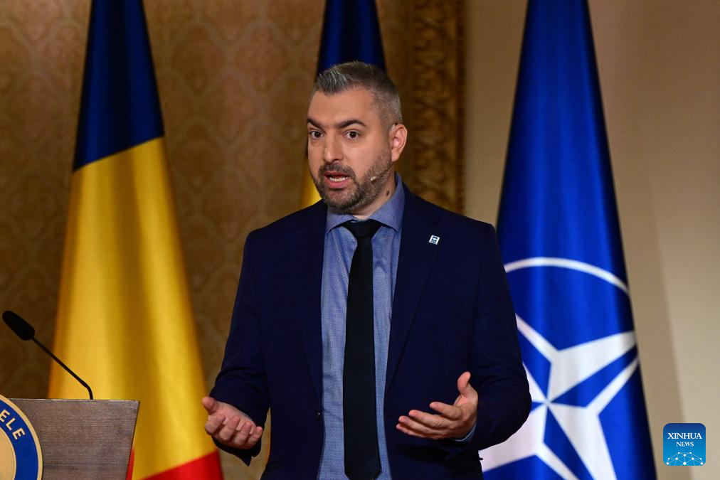 Cristian Terhes, candidate for Romania's presidency, speaks during an electoral debate organised by Romania's state television channel at the Cotroceni palace in Bucharest, Romania, April 29, 2025. Romanians will vote in the first round of presidential elections on May 4. (Photo by Cristian Cristel/Xinhua)
