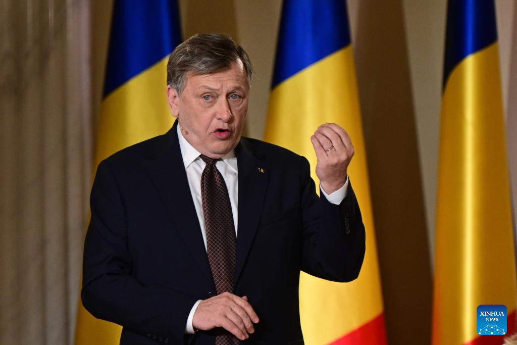 Victor Ponta, candidate for Romania's presidency, speaks during an electoral debate organised by Romania's state television channel at the Cotroceni palace in Bucharest, Romania, April 29, 2025. Romanians will vote in the first round of presidential elections on May 4. (Photo by Cristian Cristel/Xinhua)