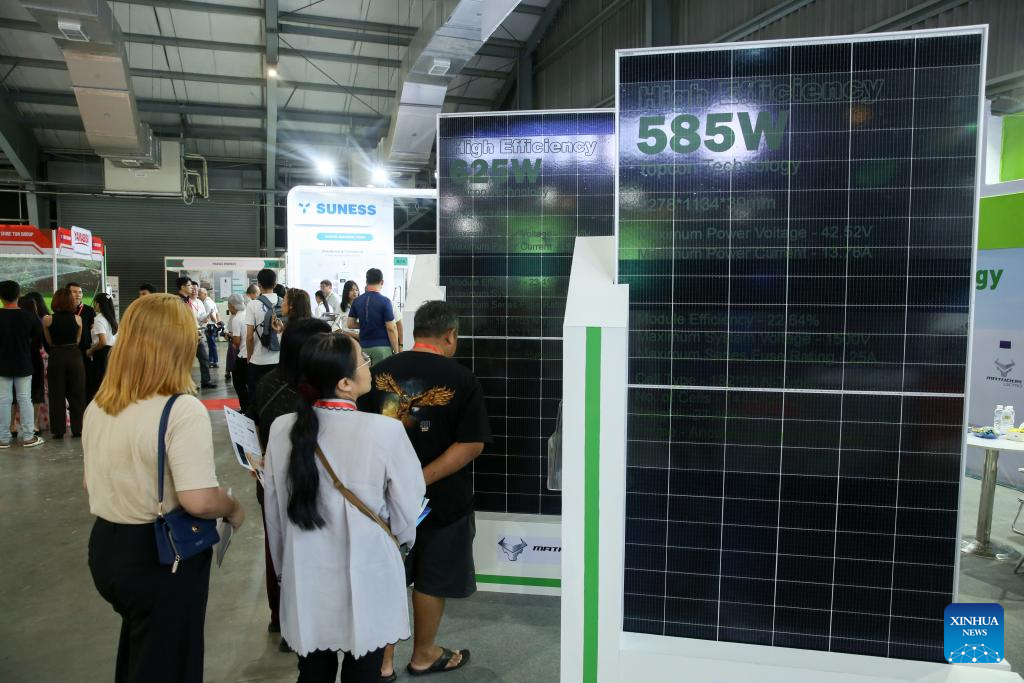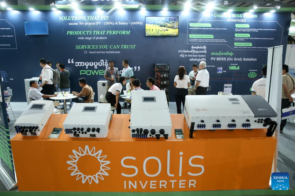 People visit the second Myanmar Power and Solar Energy Storage Lighting Expo 2025 at the Yangon Convention Center in Yangon, Myanmar, May 1, 2025. The expo kicked off on Thursday at the Yangon Convention Center in Yangon. (Xinhua/Myo Kyaw Soe)