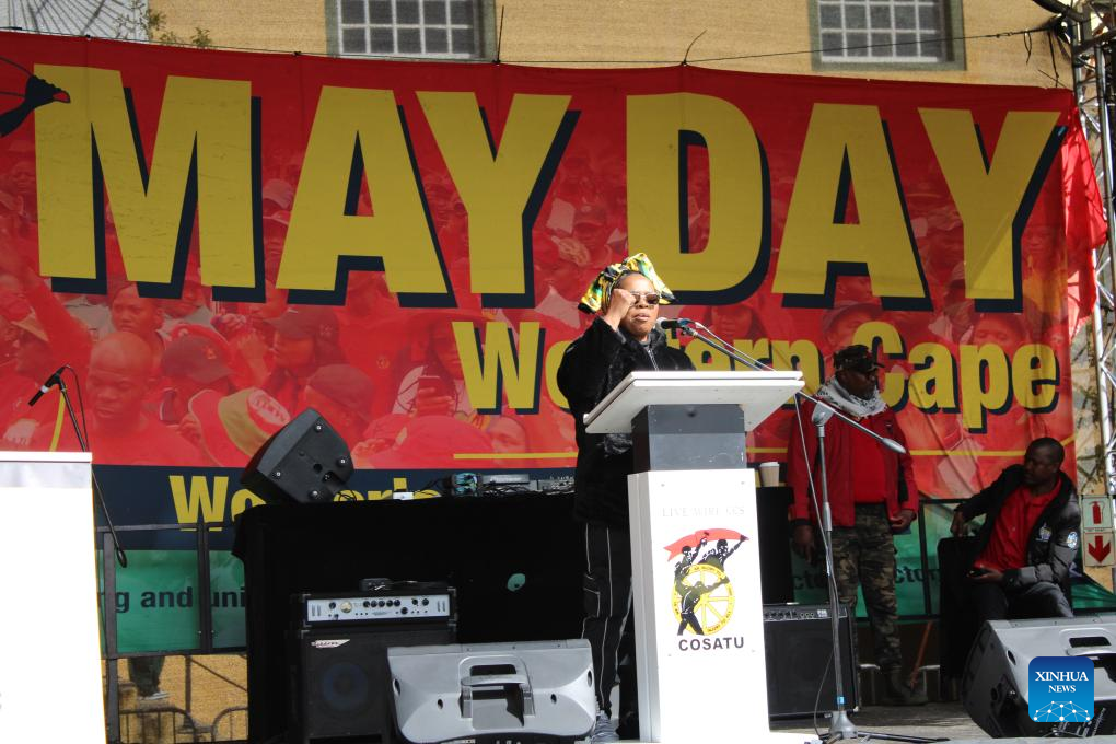 People attend the May Day rally marking International Workers' Day in Cape Town, South Africa, on May 1, 2025. (Photo by Shakirah Thebus/Xinhua)