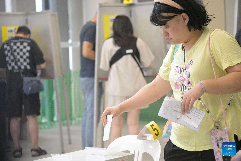 Voters are seen at a polling station for the general election in Singapore's Woodleigh, May 3, 2025. Polling stations across Singapore opened at 8:00 a.m. local time (0000 GMT) on Saturday for the country's general election. (Photo by Then Chih Wey/Xinhua)