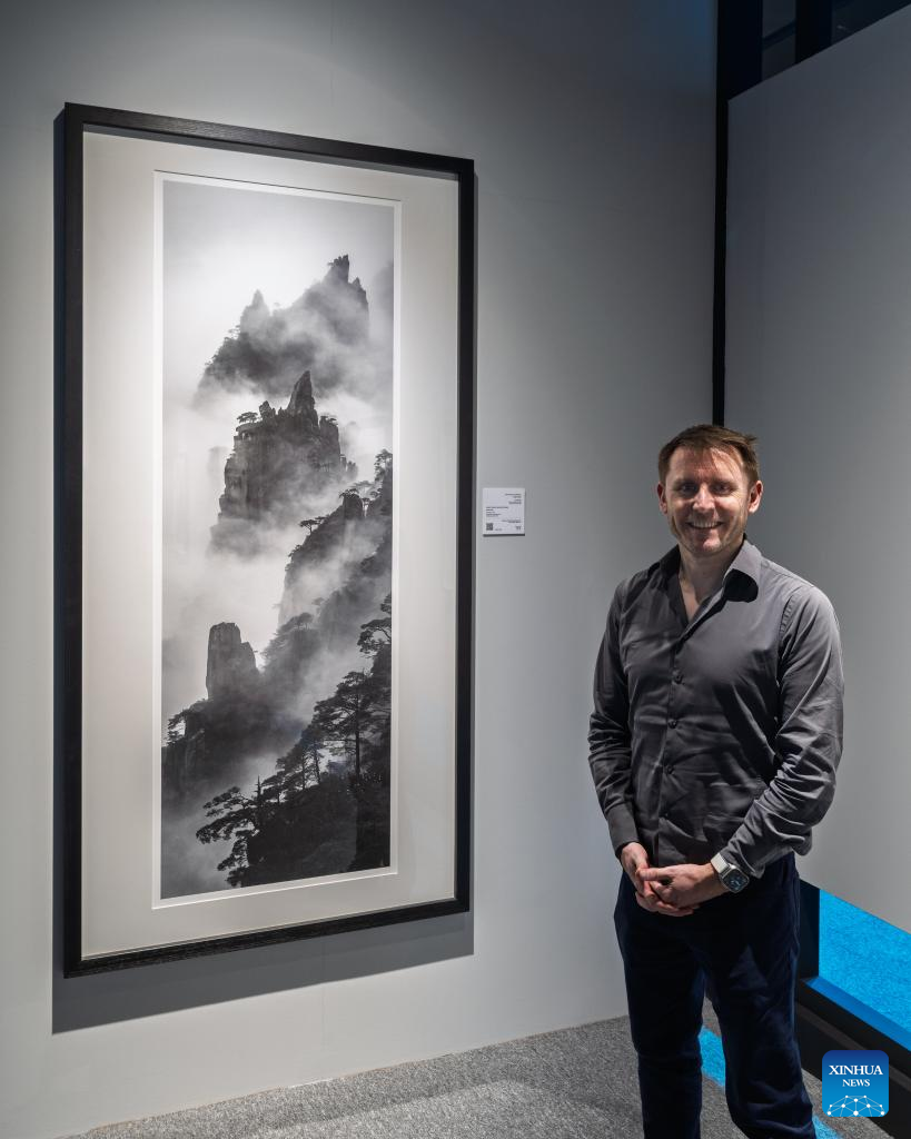 This file photo shows French photographer Nicolas Cornet's photographs of Huangshan being exhibited at the Xposure International Photography Festival in the United Arab Emirates in February, 2025. (Xinhua)