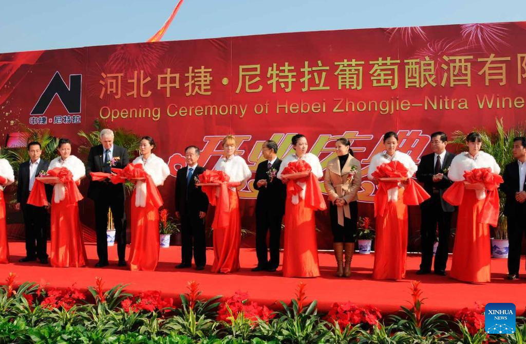 Eduard Sebo (3rd L) attends the opening ceremony of the Hebei Zhongjie-Nitra Winery at the Zhongjie Industrial Park in Cangzhou, north China's Hebei Province, in 2013. (The United Industries/Handout via Xinhua)