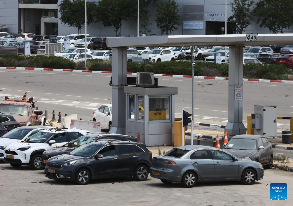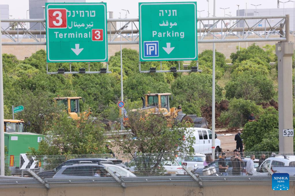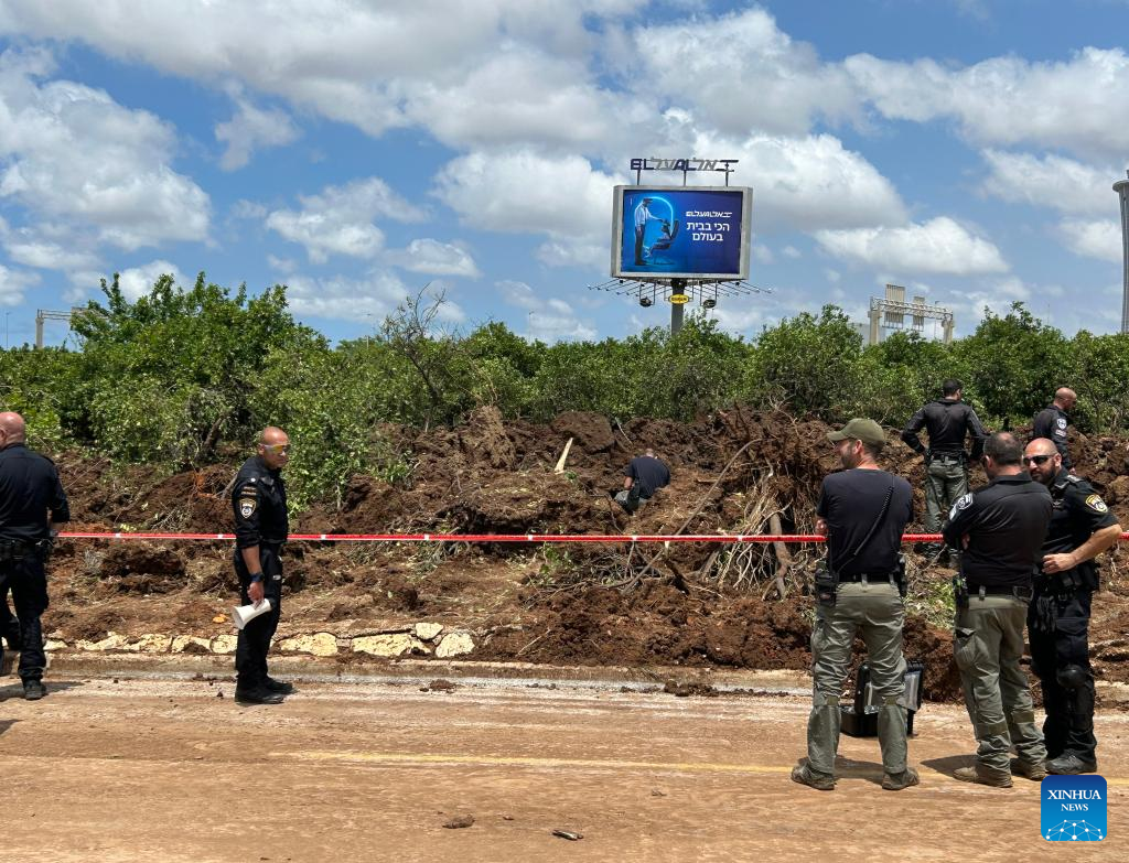 This photo taken on May 4, 2025 shows a cordoned-off area near Ben Gurion International Airport after a missile strike in Tel Aviv, Israel. A missile launched by Yemen's Houthi forces struck Israel's Ben Gurion International Airport on Sunday, injuring two people and causing damage, the Israeli military and local authorities said. The military said in a statement that aerial defense systems attempted to intercept the missile but failed. (Photo by Gil Cohen Magen/Xinhua)