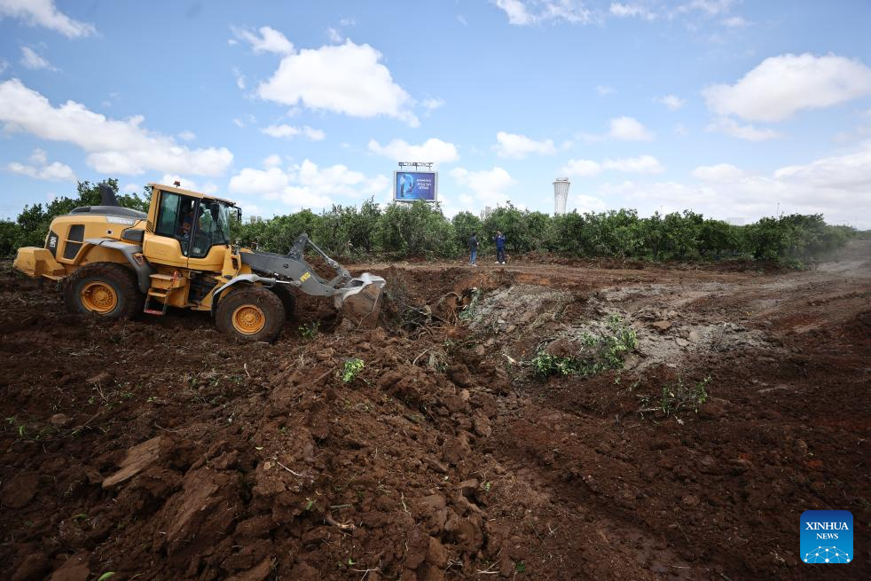 This photo taken on May 4, 2025 shows the site of a missile strike near the Ben Gurion International Airport in Tel Aviv, Israel. A missile launched by Yemen's Houthi forces struck Israel's Ben Gurion International Airport on Sunday, injuring two people and causing damage, the Israeli military and local authorities said.