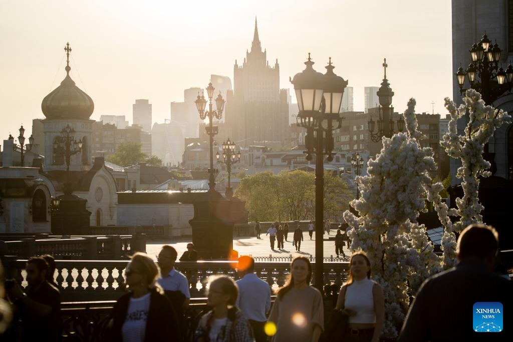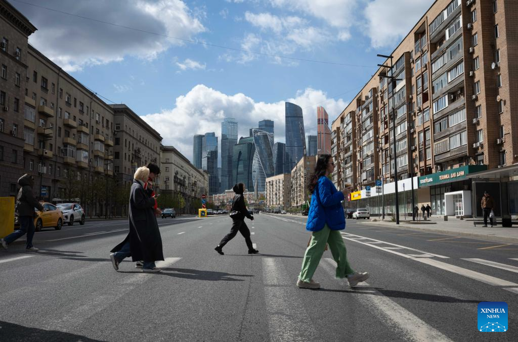 People walk on a street in Moscow, Russia, April 27, 2025. (Xinhua/Bai Xueqi)