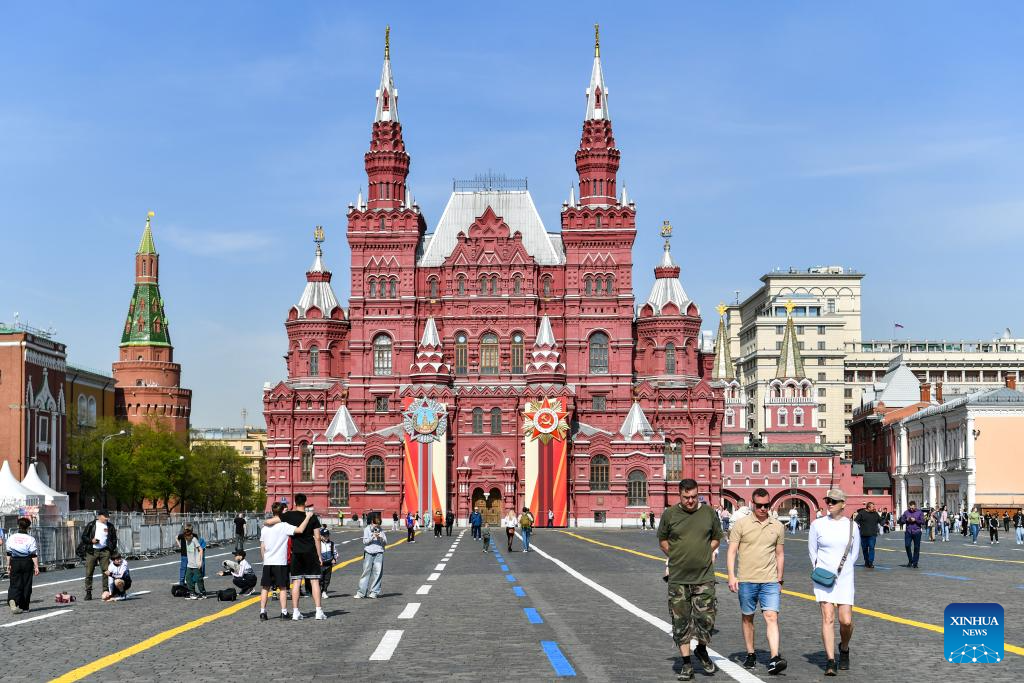 People walk past the Red Square in Moscow, Russia, April 21, 2025. (Xinhua/Cao Yang)