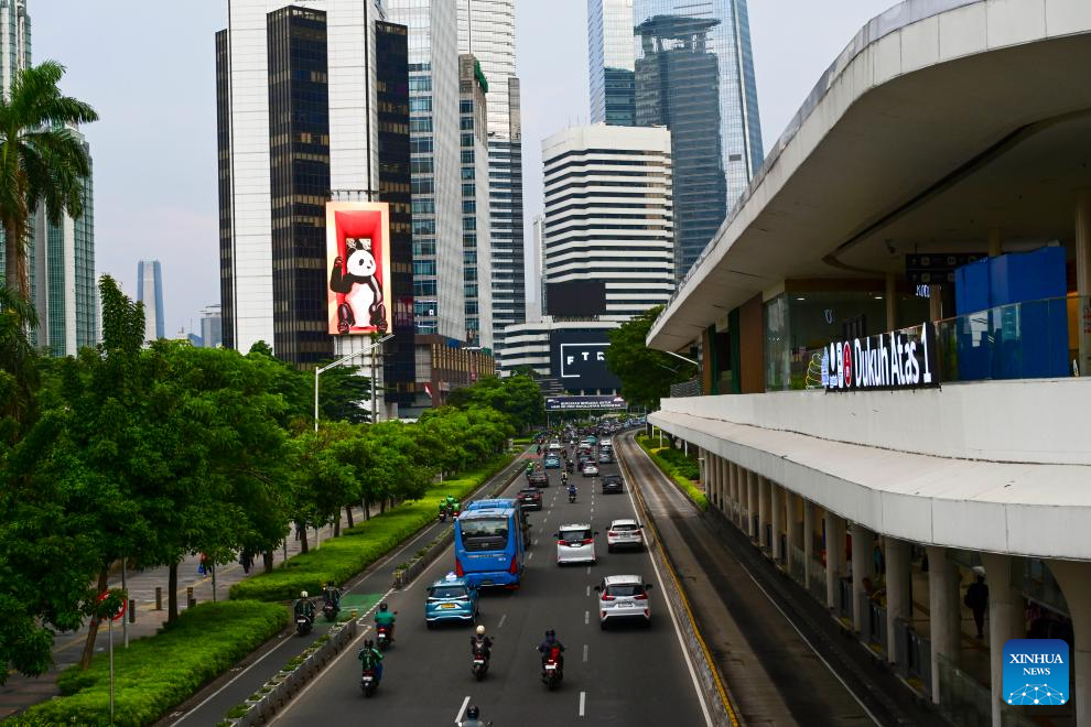 (250505) -- JAKARTA, May 5, 2025 (Xinhua) -- Vehicles run on Sudirman street in Jakarta, Indonesia, May 5, 2025. Indonesia posted an economic growth rate of 4.87 percent year-on-year in the first quarter of 2025, according to data released by the Central Statistics Agency (BPS) on Monday. (Xinhua/Zulkarnain)