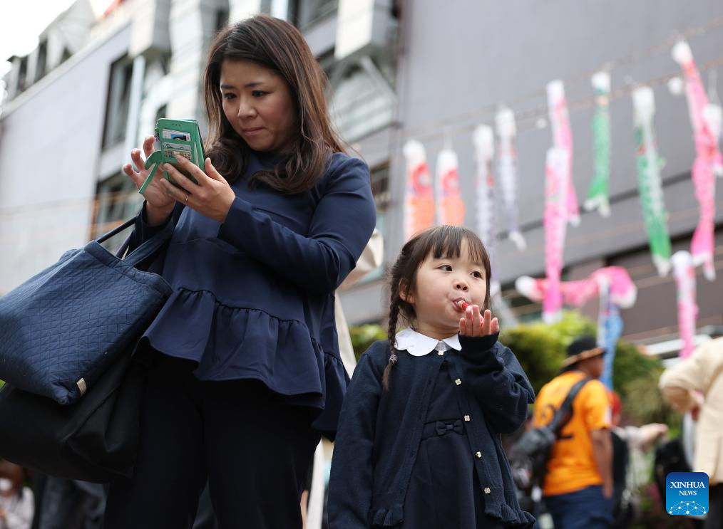 People participate in an event in celebration of the Children's day in Tokyo, Japan, May 5, 2025. (Xinhua/Jia Haocheng)