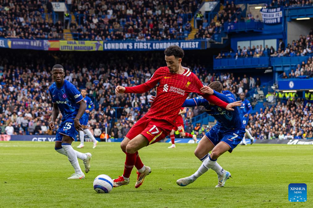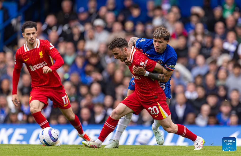 LONDON, May 4 (Xinhua) -- Chelsea's hopes of playing in the Champions League next season received a boost on Sunday when Enzo Maresca's team took advantage of Liverpool's title hangover to beat the recently-crowned Premier League champions 3-1 at Stamford Bridge.