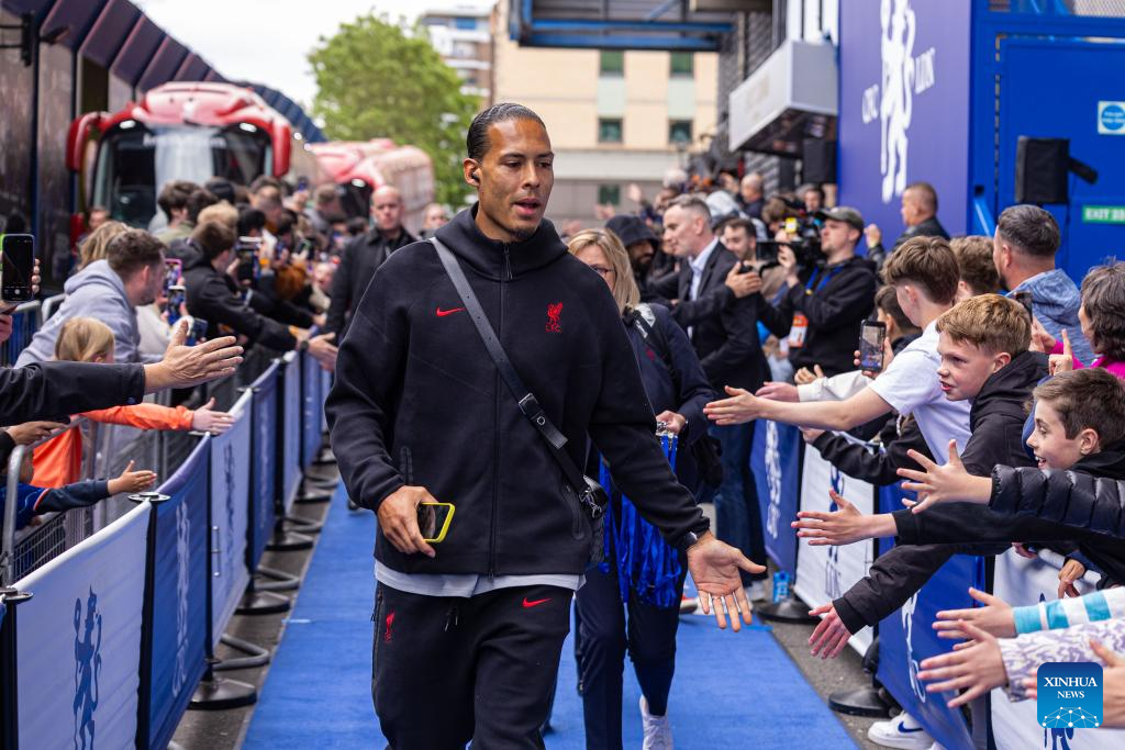 Liverpool's captain Virgil van Dijk arrives before the English Premier League match between Chelsea FC and Liverpool FC in London, Britain, May 4, 2025. (Xinhua)