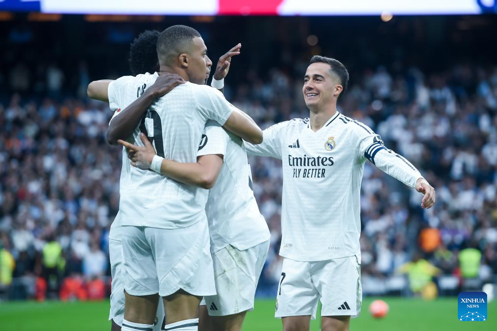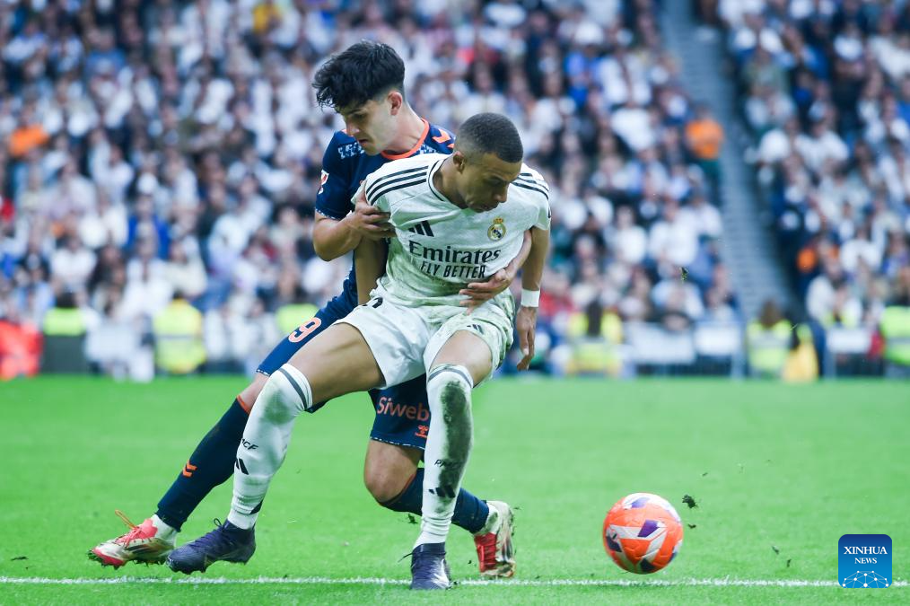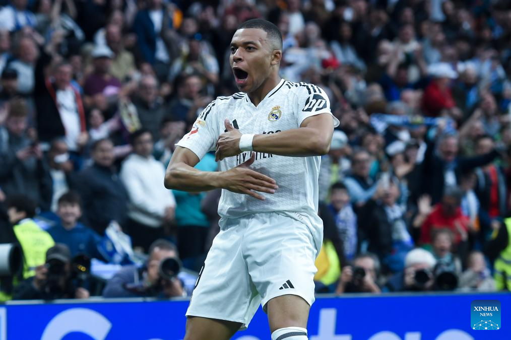 MADRID, May 4 (Xinhua) -- Kylian Mbappe and Arda Guler were Real Madrid's heroes as Carlo Ancelotti's side survived a second-half fightback to hold on for a 3-2 win at home to Celta Vigo.