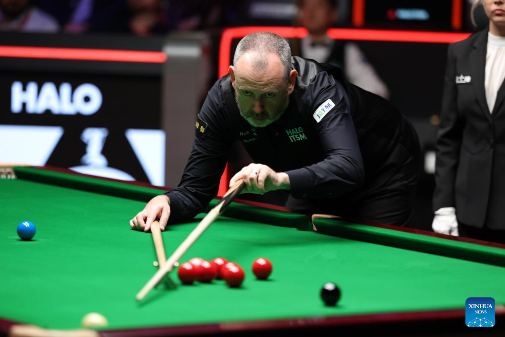 Mark Williams competes during the final between Zhao Xintong of China and Mark Williams of Wales at World Snooker Championship 2025 in Sheffield, Britain, May 5, 2025. (Photo by Zhai Zheng/Xinhua)