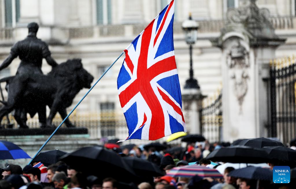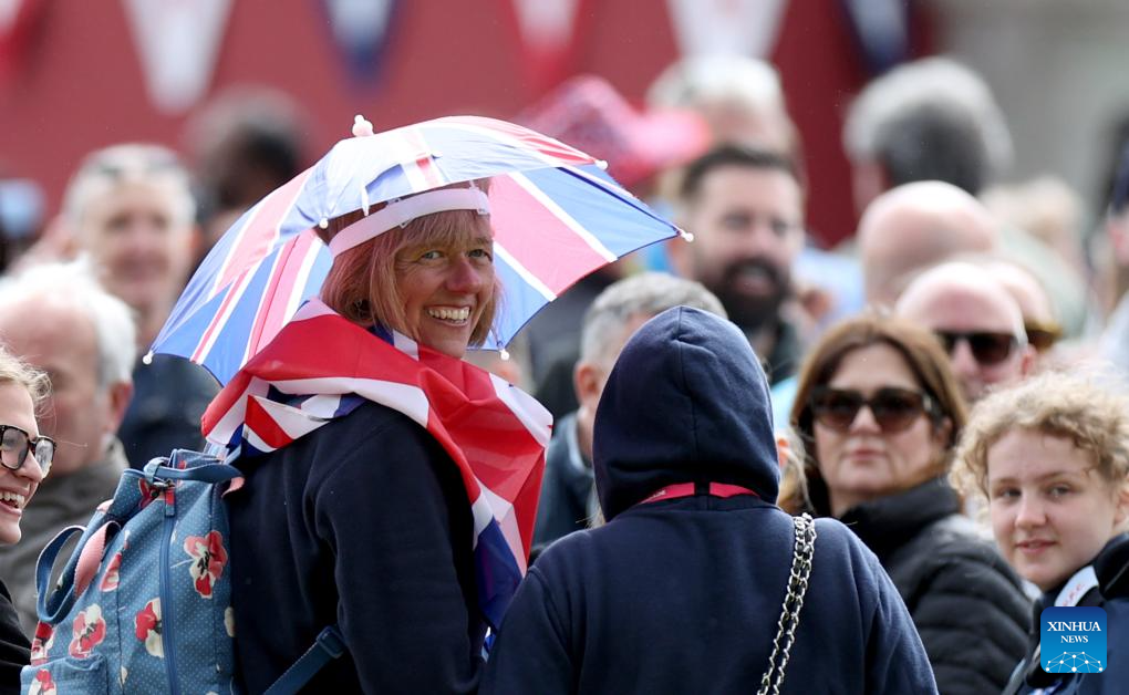 People prepare to leave after watching the military procession held in London, Britain, on May 5, 2025. Britain held military processions and a Royal Air Force flypast on Monday to commemorate the 80th anniversary of Victory in Europe (VE) Day. (Xinhua/Li Ying)