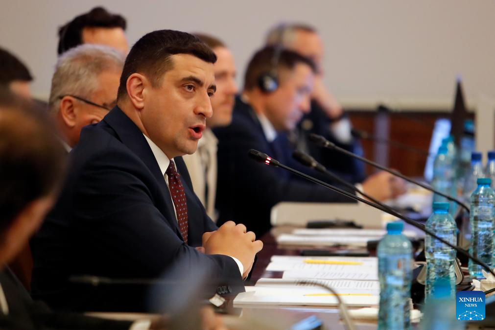 George Simion attends a conference at Parliament palace in Bucharest, Romania, May 6, 2025. George Simion, chairman of the Alliance for the Union of Romanians, and Bucharest Mayor Nicusor Dan will advance to the runoff of Romania's presidential election rerun, scheduled for May 18. (Photo by Cristian Cristel/Xinhua)