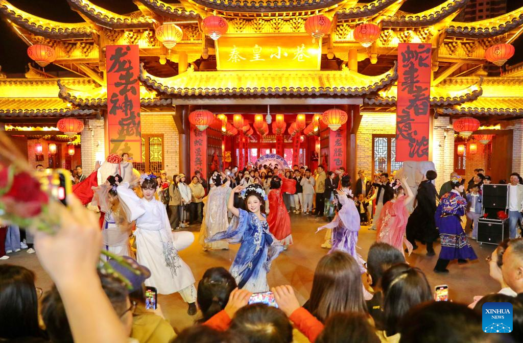 Tourist spending also saw a notable rise, reaching 180.3 billion yuan (roughly 25 billion U.S. dollars), an 8 percent year-on-year jump that highlights the sustained vitality of consumer activity. (Photo by Cheng Lin/Xinhua)