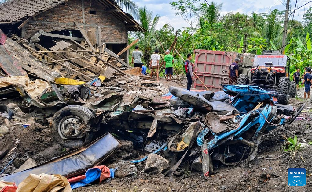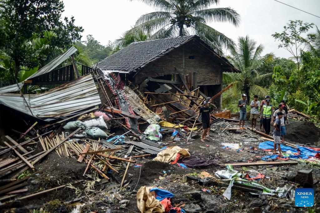 People stand near a damaged house after a truck accident in Purworejo, Central Java, Indonesia, May 7, 2025. At least 11 people were killed and five others injured when a truck collided with a small bus in Indonesia's Central Java province on Wednesday, a senior rescue official said. (Photo by Agung Supriyanto/Xinhua)