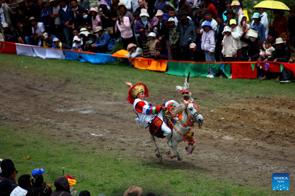 This undated photo taken by Lhapa Dondrup shows a rider demonstrating his skills at a racecourse in Lhasa, southwest China's Xizang Autonomous Region. Lhapa Dondrup, a 24-year-old man born in Lhasa, has been suffering from osteogenesis imperfecta (OI), commonly known as brittle bone disease, since childhood. Now as an adult, he stands under one meter tall and relies on crutches and electric wheelchair for mobility. Despite these challenges, Lhapa harbors a dream of becoming a photographer.