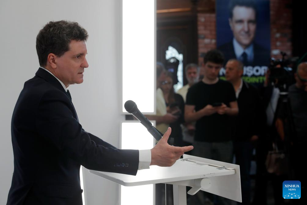 Bucharest Mayor Nicusor Dan attends a news conference in Bucharest, Romania, on May 6, 2025. George Simion, chairman of the Alliance for the Union of Romanians, and Bucharest Mayor Nicusor Dan will advance to the runoff of Romania's presidential election rerun, scheduled for May 18. (Photo by Cristian Cristel/Xinhua)
