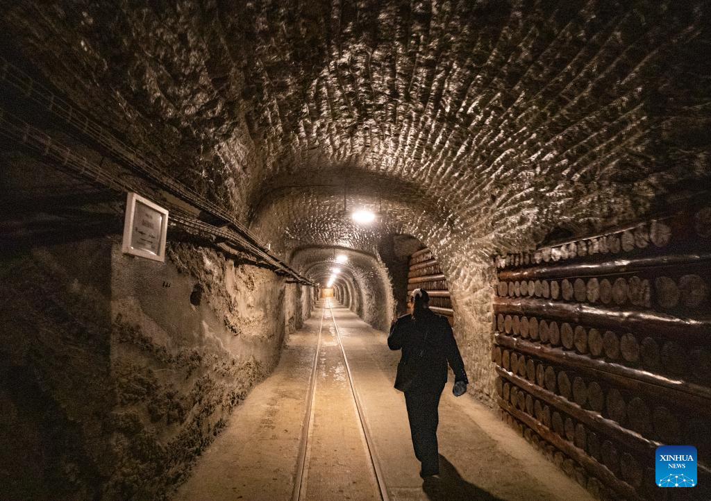 A tourist visits the Wieliczka Salt Mine in Wieliczka, Poland, May 7, 2025. The deposit of rock salt in Wieliczka has been mined since the 13th century. This major industrial undertaking is the oldest of its type in Europe. The Wieliczka Salt Mine illustrates the historic stages of the development of mining techniques in Europe from the 13th to the 20th centuries: the mine has hundreds of kilometers of galleries with works of art, underground chapels and statues sculpted in the salt, making a fascinating pilgrimage into the past. The Wieliczka Salt Mine was included in the UNESCO World Heritage List in 1978. (Xinhua/Zhang Fan)