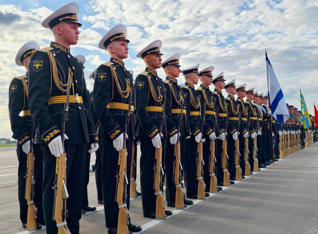 Members of an honor guard line up at the airport in Moscow, Russia, May 7, 2025. Chinese President Xi Jinping arrived here on Wednesday to pay a state visit to Russia and attend the celebrations marking the 80th anniversary of the Victory in the Soviet Union's Great Patriotic War. (Xinhua/Ding Haitao)