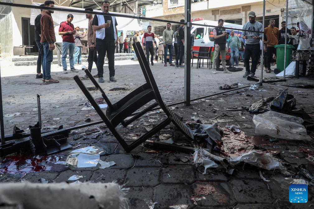 Palestinians are seen at a market targeted in an Israeli airstrike in Gaza City, on May 7, 2025. At least 40 Palestinians were killed and dozens of others wounded in Israeli attacks in Gaza City on Wednesday, according to Palestinian medical sources. (Photo by Rizek Abdeljawad/Xinhua)