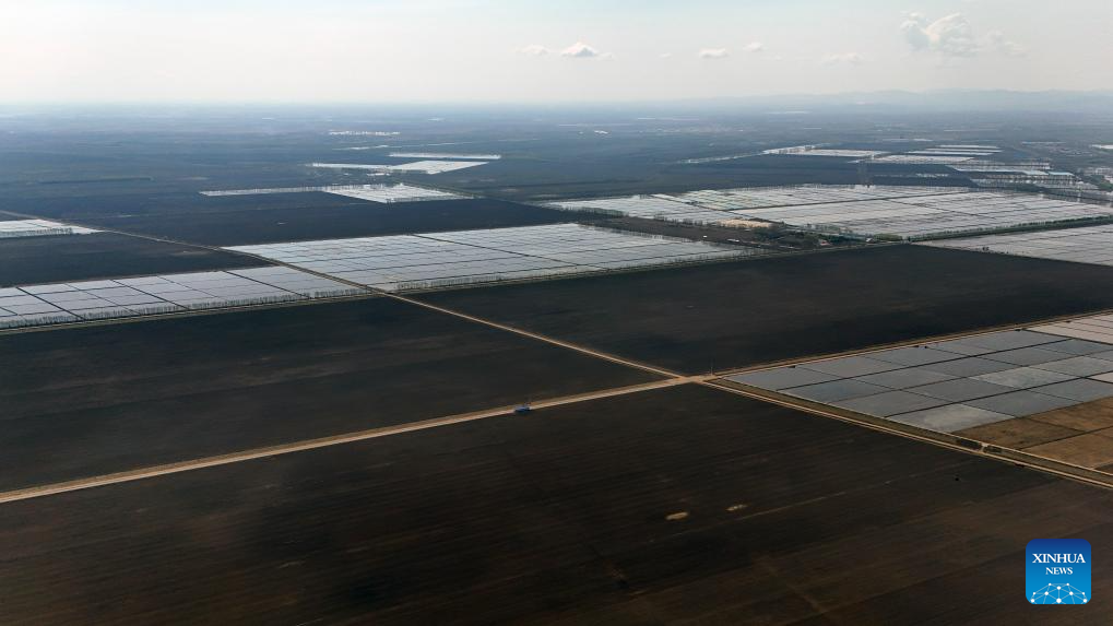 This drone photo taken on May 8, 2025 shows vast blocks of farmland of a farming company under the Beidahuang Group, in Shuangyashan City, northeast China's Heilongjiang Province. At present, the spring sowing in Heilongjiang cultivation areas are in full swing. All agricultural production units of Beidahuang Group, one of China's leading agricultural conglomerates, are seizing the farming season and busy with the sowing operations in both paddy rice fields and dry fields. (Xinhua/Wang Song)