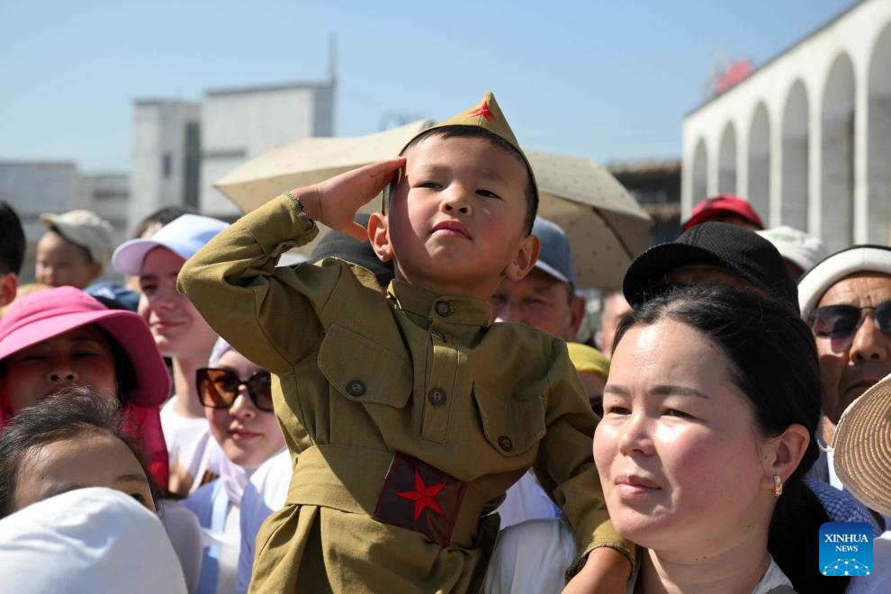 Military personnel attend a military parade marking the 80th anniversary of the victory in the Great Patriotic War, in Bishkek, Kyrgyzstan, May 8, 2025. (Office of the President of the Kyrgyz Republic/Handout via Xinhua)