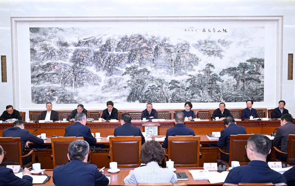 A meeting on a new round of enforcement inspection of the Food Safety Law launched by the Standing Committee of the National People's Congress (NPC) is held in Beijing, capital of China, May 9, 2025. Vice chairmen of the NPC Standing Committee Cai Dafeng, Tie Ning and Losang Jamcan attended the meeting. (Xinhua/Rao Aimin)