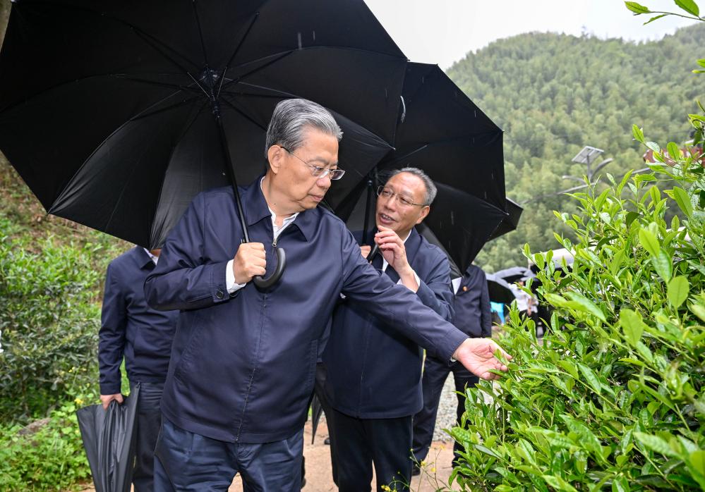 Zhao Leji, chairman of the National People's Congress Standing Committee and a member of the Standing Committee of the Political Bureau of the Communist Party of China Central Committee, conducts an inspection and research tour in Nanping City, southeast China's Fujian Province, May 8, 2025. Zhao conducted an inspection and research tour in Fujian from Wednesday to Friday this week. (Xinhua/Yin Bogu)
