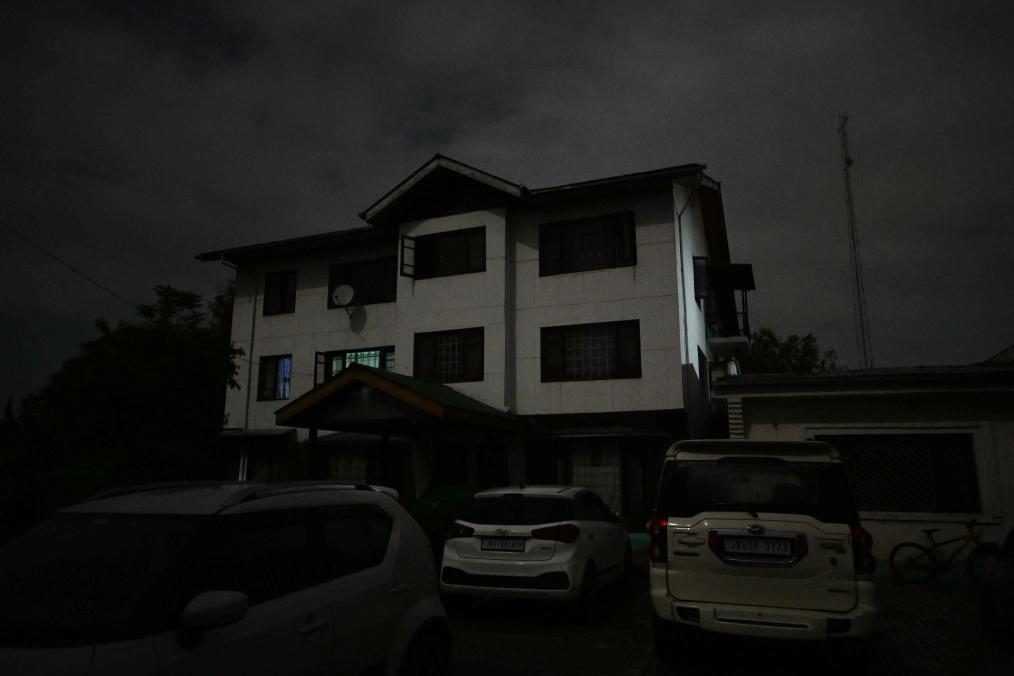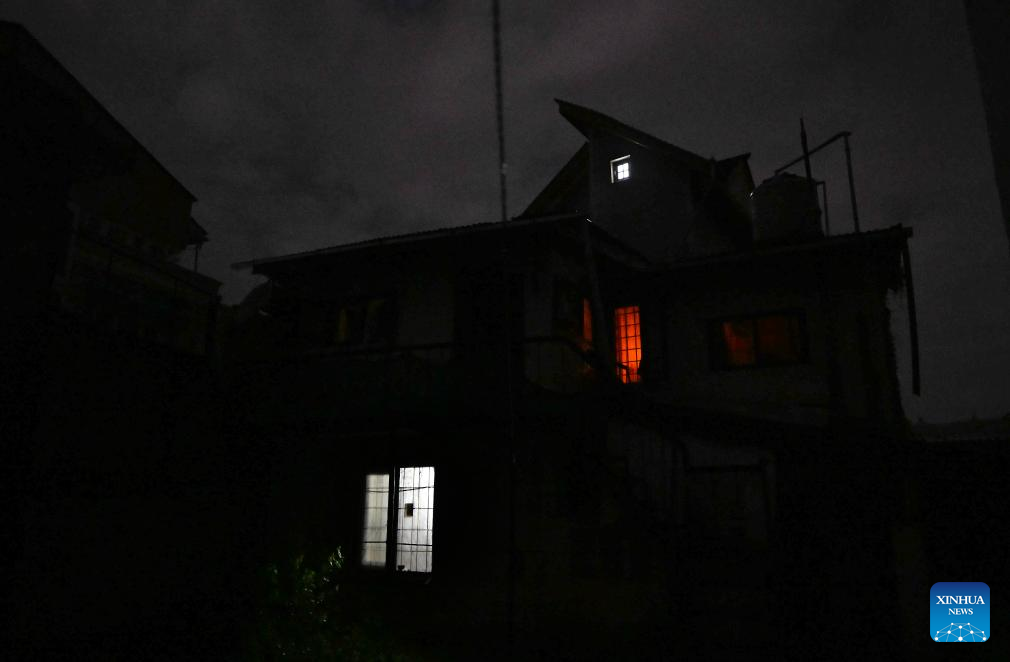 Photo taken on May 9, 2025 shows a building during a blackout enforced by authorities in Srinagar city, Indian-controlled Kashmir. Tensions have remained as flare-ups between Pakistan and India have entered the third day. (Xinhua/Javed Dar)
