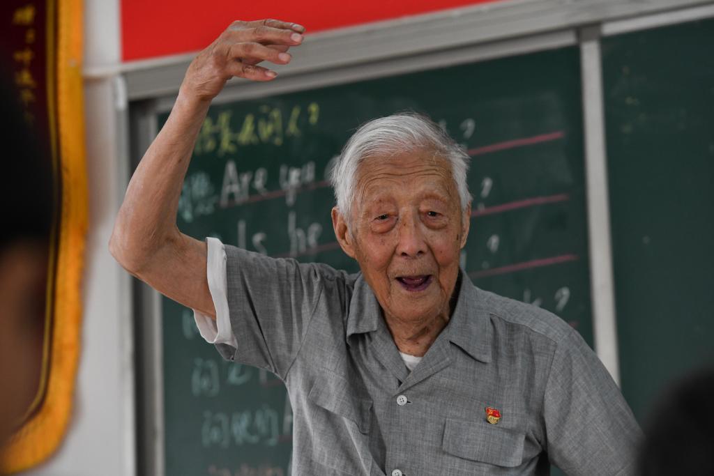 In more than three decades since he left his post, Ye has never really stopped teaching. Now, at 97 years old, he still stands in front of his chalkboard, devoting his days to the children of Buchen Village in Hexian County, east China's Anhui Province.