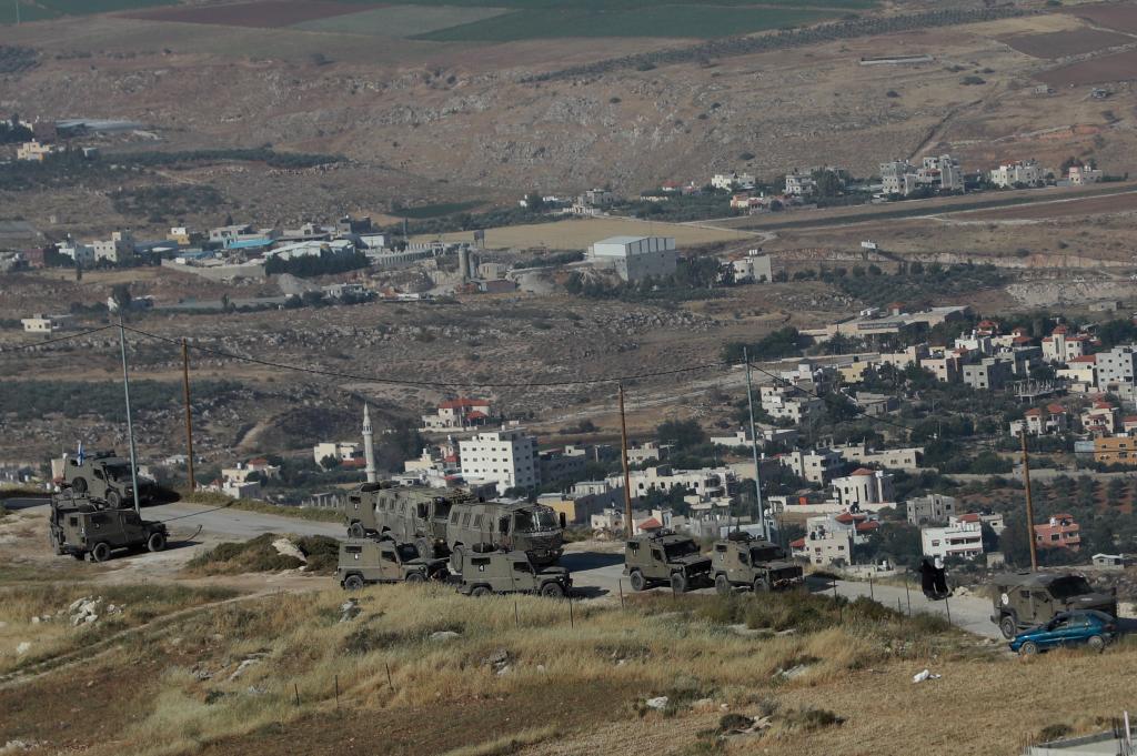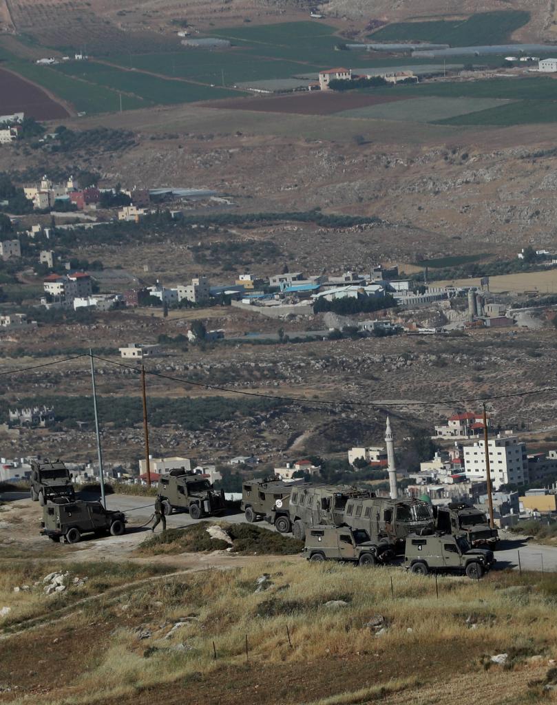 Israeli military vehicles are seen during an army raid in Nablus, the northern West Bank, on May 9, 2025. Israeli fighters on Friday killed the head of the Islamic Jihad movement in Jenin, northern West Bank, the Israel Defense Forces (IDF) and Israel Police said in a joint statement. The statement added that he was located and killed in Nablus city in a joint operation by the IDF, Israel Police's National Counter Terror Unit, and the Israel Security Agency, or the Shin Bet. (Photo by Ayman Nobani/Xinhua)