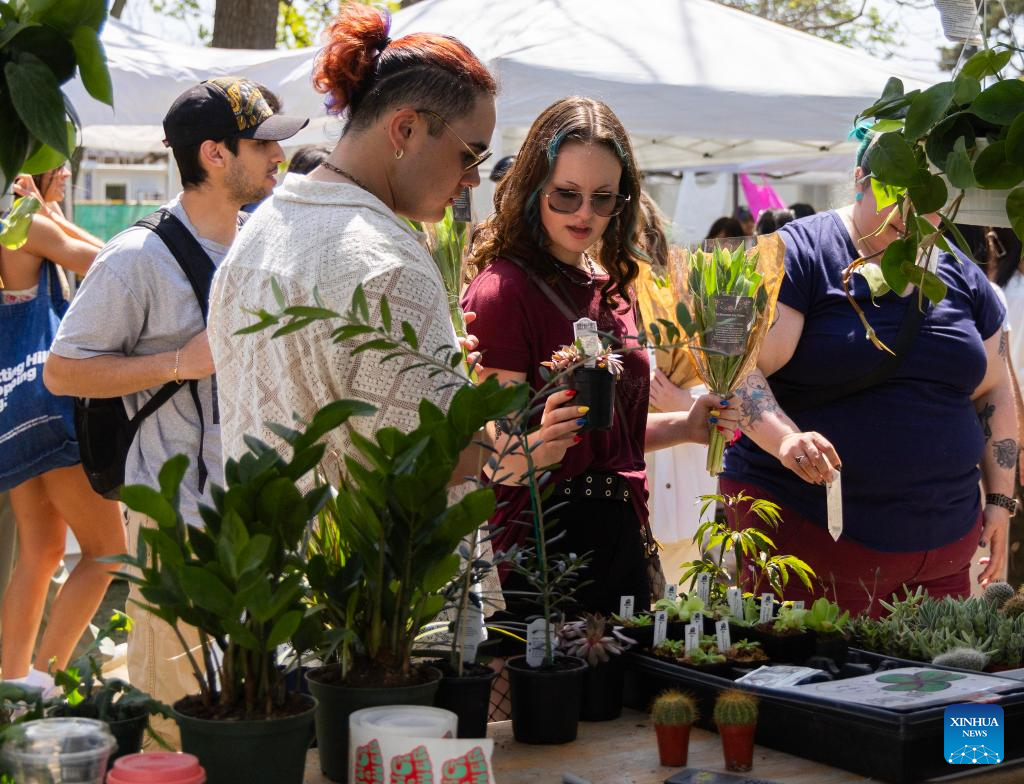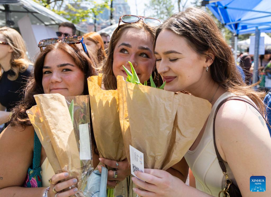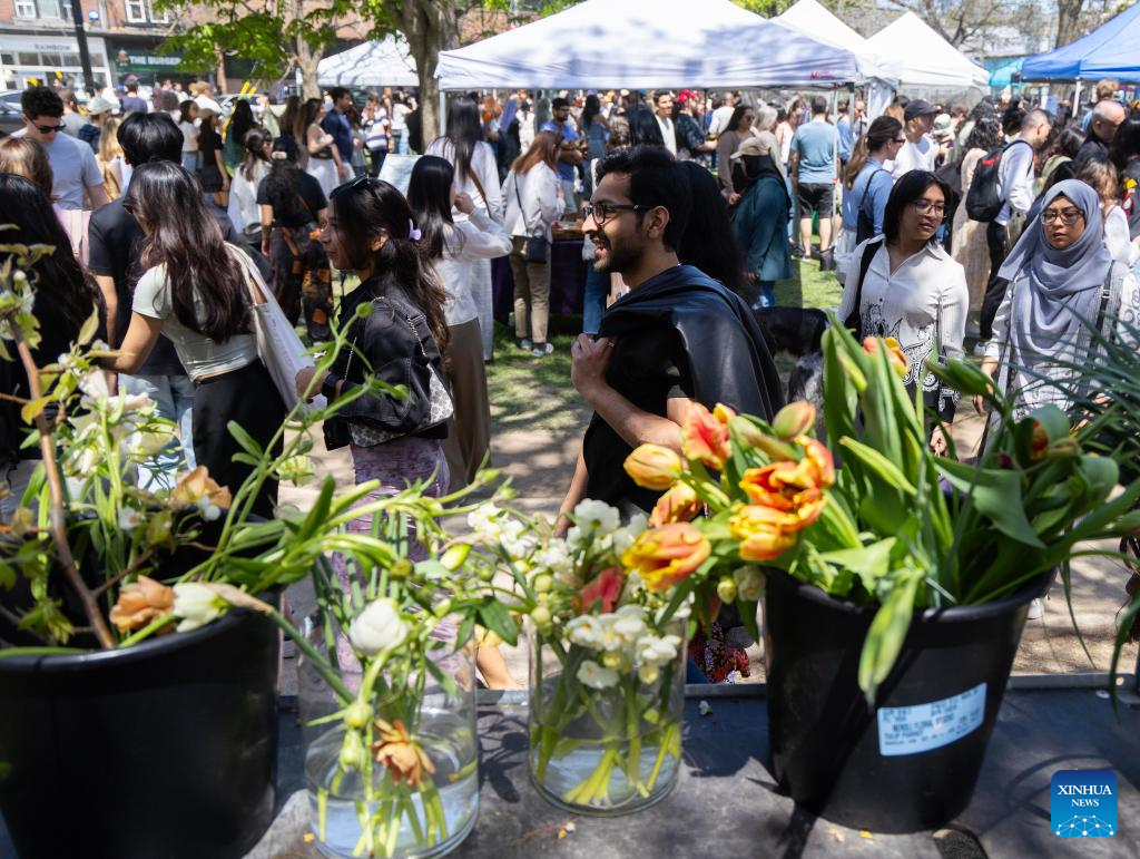 People visit the Toronto Flower Market in Toronto, Canada, on May 10, 2025. The traditional monthly market is held here from May to October, one day each month. (Photo by Zou Zheng/Xinhua)