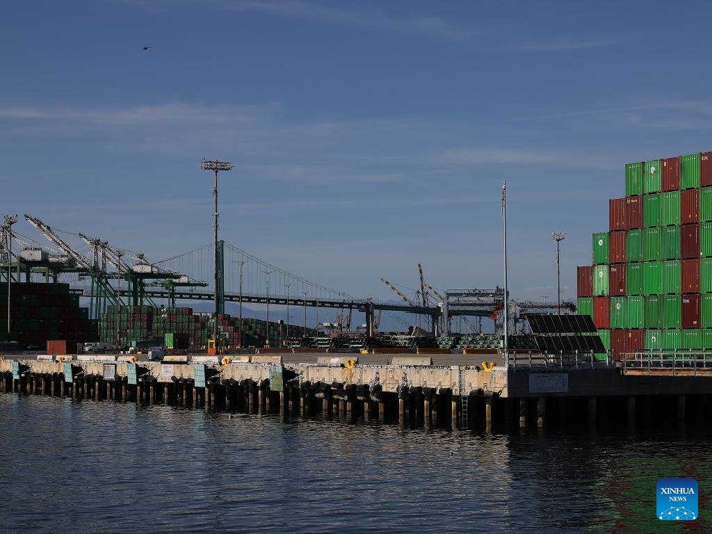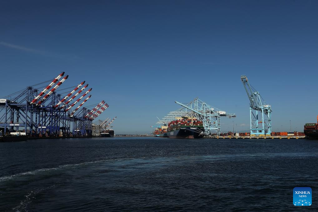 This photo taken on May 10, 2025 shows a view of the Port of Los Angeles in California, the United States. In a recent advertisement, California Governor Gavin Newsom warned the American public of the "real" and "serious" consequences of recent high tariffs, describing the situation as a "code red" economic emergency. (Photo by Qiu Chen/Xinhua)