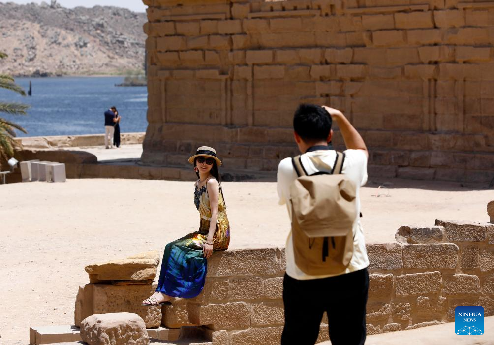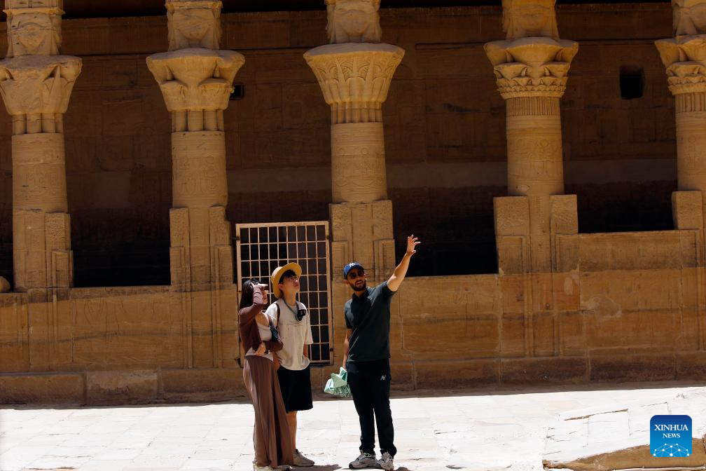 ASWAN, Egypt, May 11 (Xinhua) -- Standing in awe beneath the open sky inside the Philae Temple complex by the Nile River, in Upper Egypt's city of Aswan, Spanish traveler Brais Recarey took in the symmetry of the towering columns and the intricate inscriptions carved millennia ago.