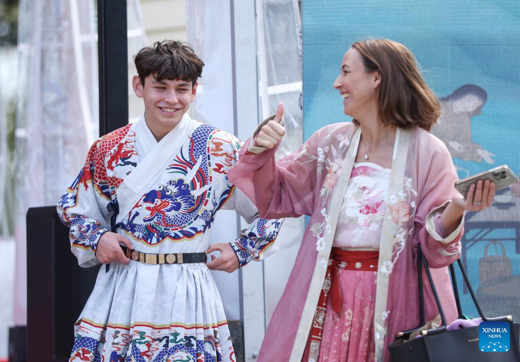 The participants also enthusiastically tried on Hanfu and walked through the garden, taking photos and sharing their experiences online. Families also enjoyed traditional Chinese musical performances and tea appreciation.