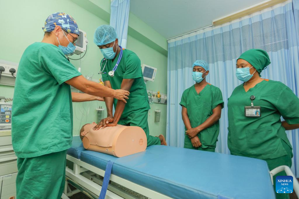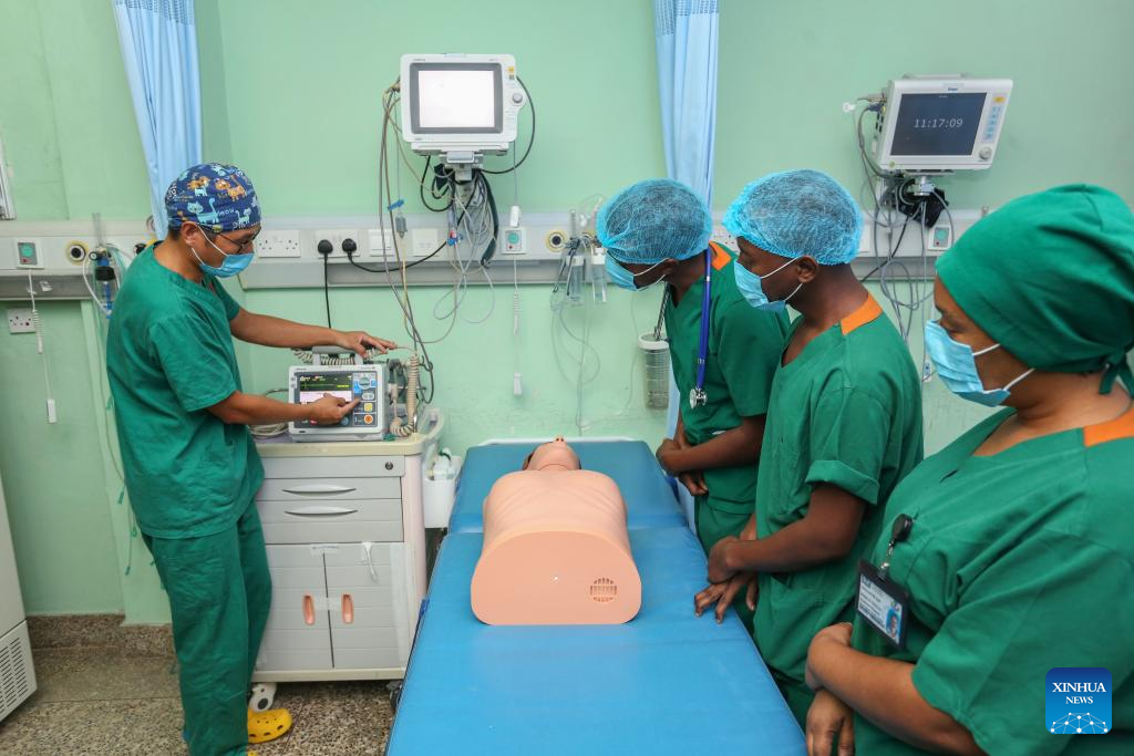 DAR ES SALAAM, May 11 (Xinhua) -- The soft hum of the air conditioner filled the training room at Muhimbili National Hospital in Tanzania's port city of Dar es Salaam. Elick William Mwakatungila, a nurse, pressed his gloved hands firmly on the chest of a lifelike mannequin. His breathing was steady, his eyes locked in concentration.