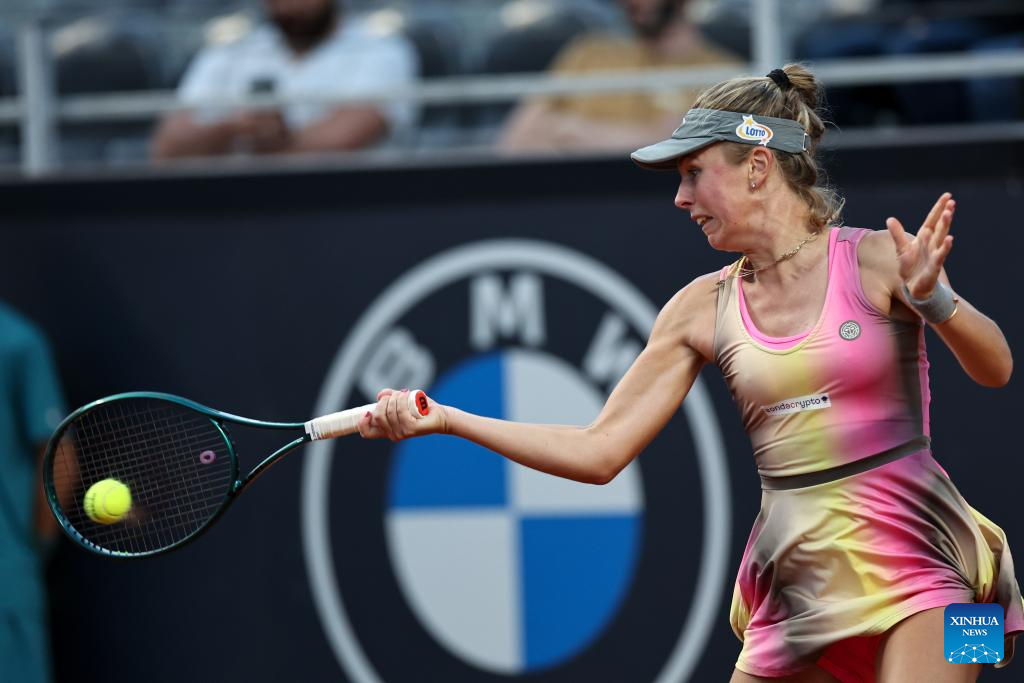 Magdalena Frech returns a shot during the women's singles round of 32 match between Magdalena Frech of Poland and Zheng Qinwen of China at the WTA Italian Open in Rome, Italy, May 11, 2025. (Xinhua/Li Jing)