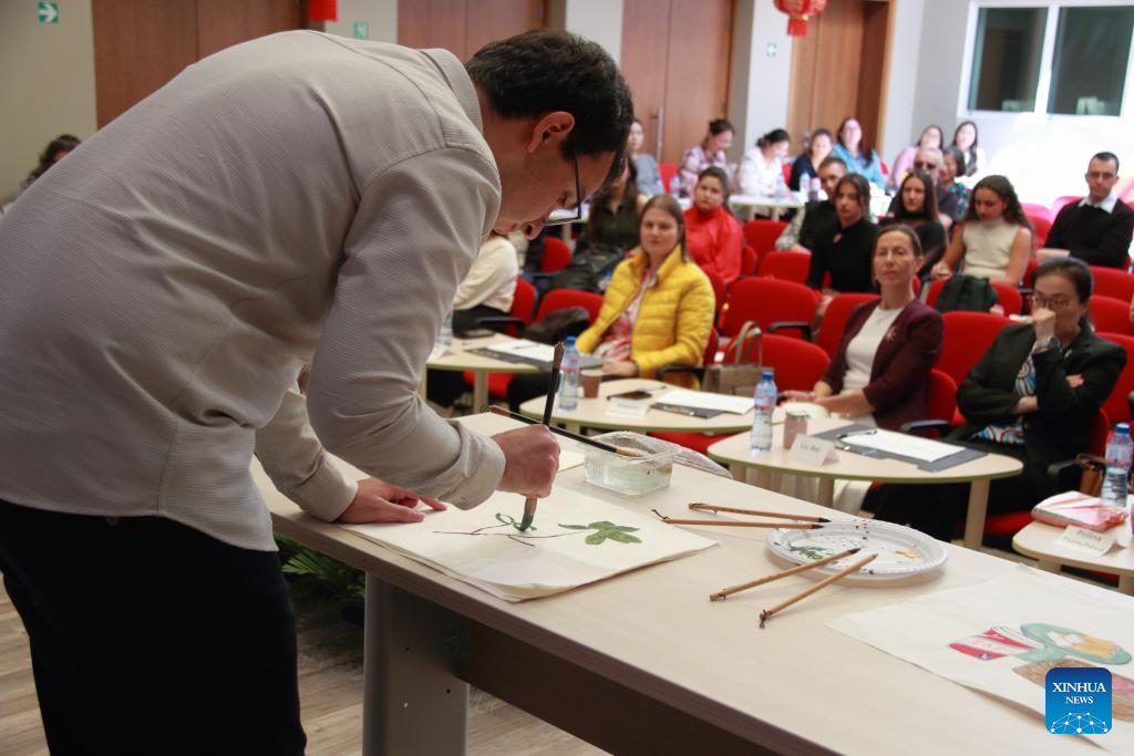 Eight contestants from three Bulgarian universities delivered speeches, participated in quiz games related to Chinese language and culture, and showcased their artistic talents during the event. (Photo by Marian Draganov/Xinhua)