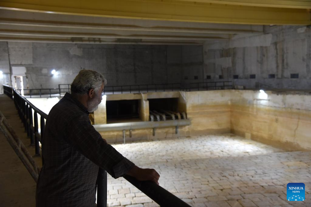 A worker looks at a dry pumping chamber of the Ain al-Fijeh spring facility in Damascus, Syria, on May 12, 2025. Damascus is facing one of its most severe water crises in decades as the flow from the Syrian capital's main water source, the Ain al-Fijeh spring in the countryside west of the capital, dropped to its lowest level since 1958, an official said Monday. (Photo by Monsef Memari/Xinhua)