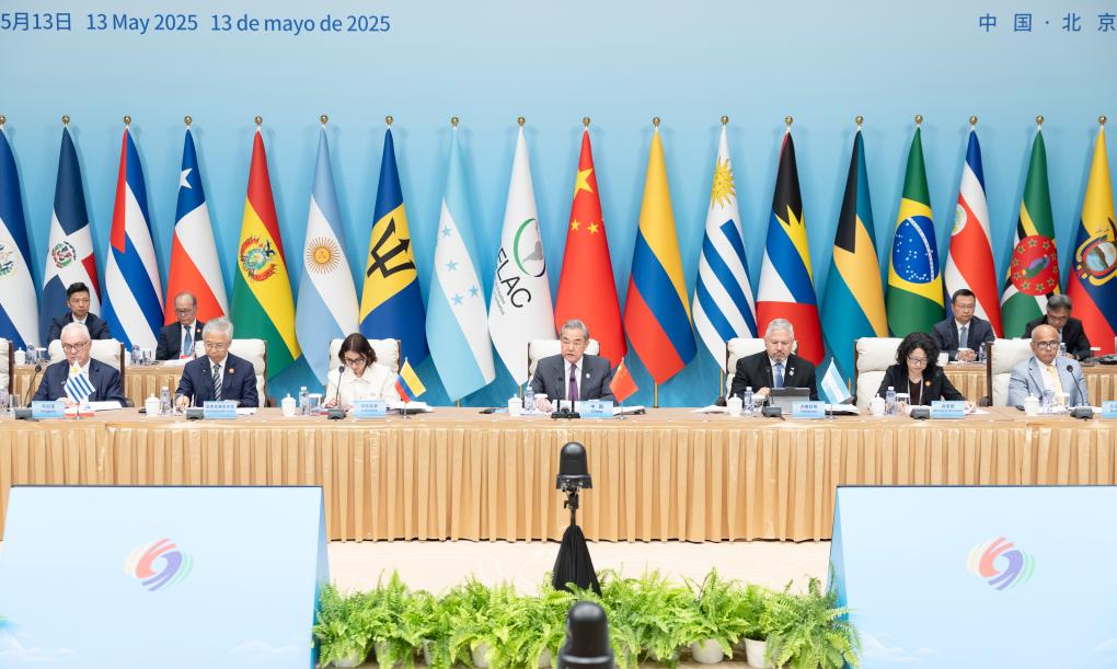 Chinese Foreign Minister Wang Yi, also a member of the Political Bureau of the Communist Party of China Central Committee, presides over the fourth ministerial meeting of the China-CELAC (Community of Latin American and Caribbean States) Forum in Beijing, capital of China, May 13, 2025. The meeting was attended by foreign ministers, representatives of member states of the CELAC, as well as heads of regional organizations. (Xinhua/Ding Haitao)